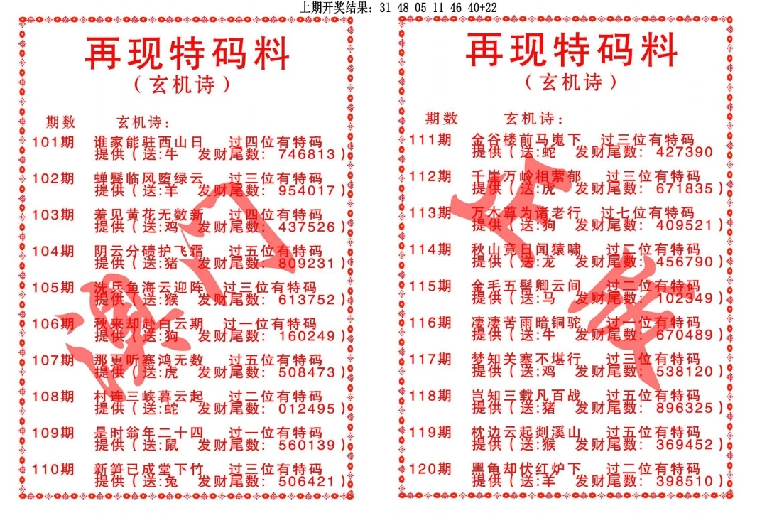 再现特码料