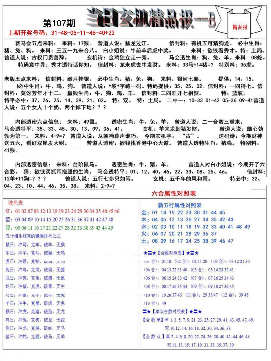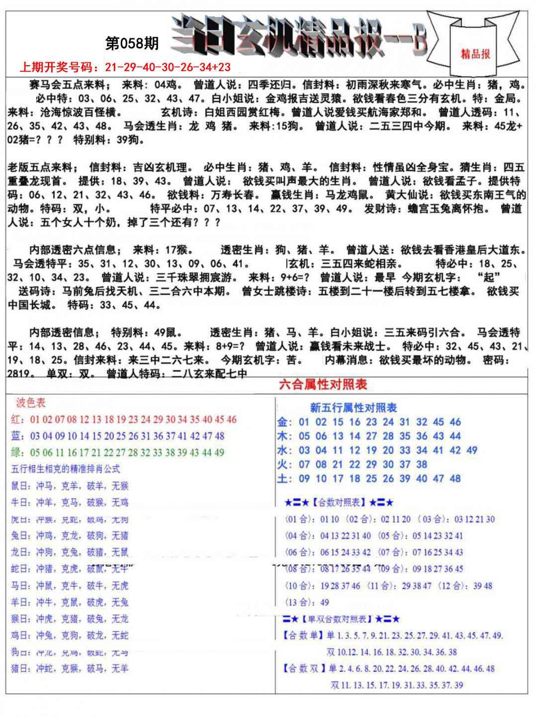 当日玄机精品报B