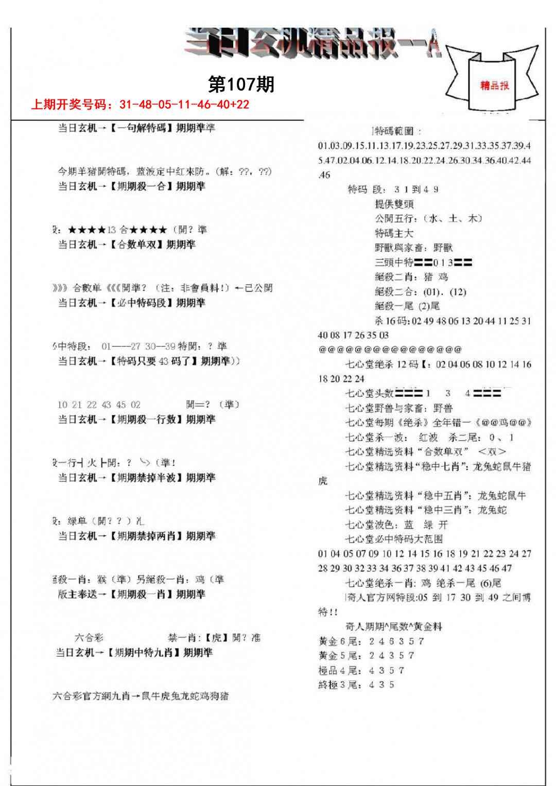 当日玄机精品报A
